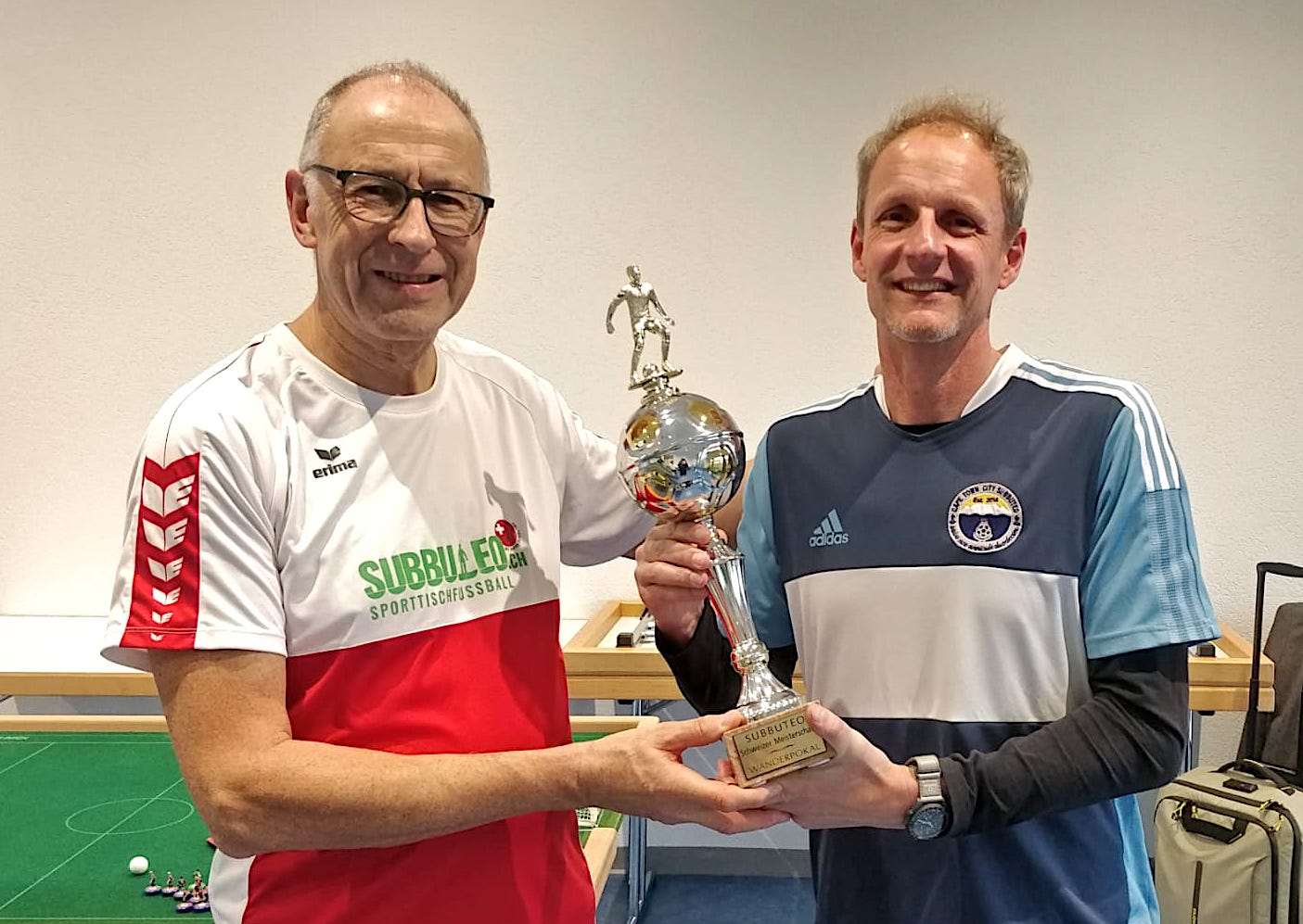 Seinen Ruf als zurzeit stärkster hiesiger Subbuteo-Spieler festigte Peter Erb an der Schweizermeisterschaft vom 13. November 2021 in Schönenwerd SO. Zum 2. Mal in Folge gewann er den Titel. Diesmal vor Fabio Domenico, der nach ein paar Jahren Absenz an die Platte zurückgekehrt ist und den Heimvorteil zu nutzen wusste. Platz 3 belegt John Imbrogiano nach ebenfalls längerer Absenz. Auf den Rängen 4 bis 6 folgen Martin Wiesmann, Maxwell Gautschi und Roman Bernhardsgrütter.